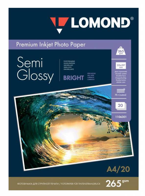 Фотобумага Lomond 1106301 A4/260г/м2/20л./белый полуглянцевое для струйной печати