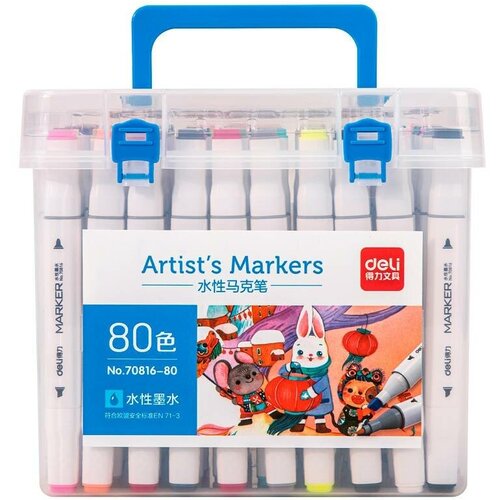 Набор маркеров для скетчинга Deli 70816-80 скошенный пиш. наконечник 80цв. пластиковая коробка