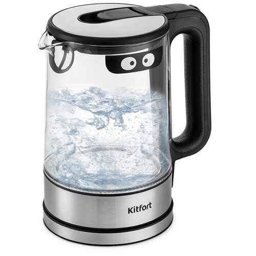 Электрочайник Kitfort KT-6128 [пластик, нержавеющая сталь, термостойкое стекло, 1.7 л, 2200 Вт, фильтр, скрытый нагревательный элемент, черный]