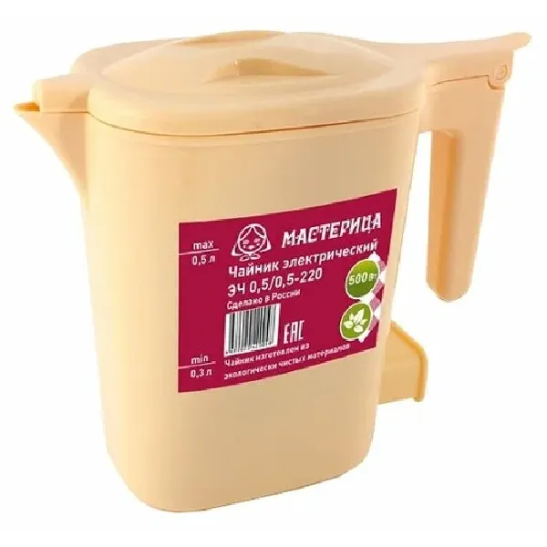 Чайник электрический Мастерица ЭЧ 0,5/0,5-220Б, пластиковый, бежевый, 0,5л, 500 Вт