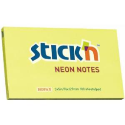 Блок самоклеящийся бумажный Stick`n 21135 76x127мм 100лист. 70г/м2 неон желтый